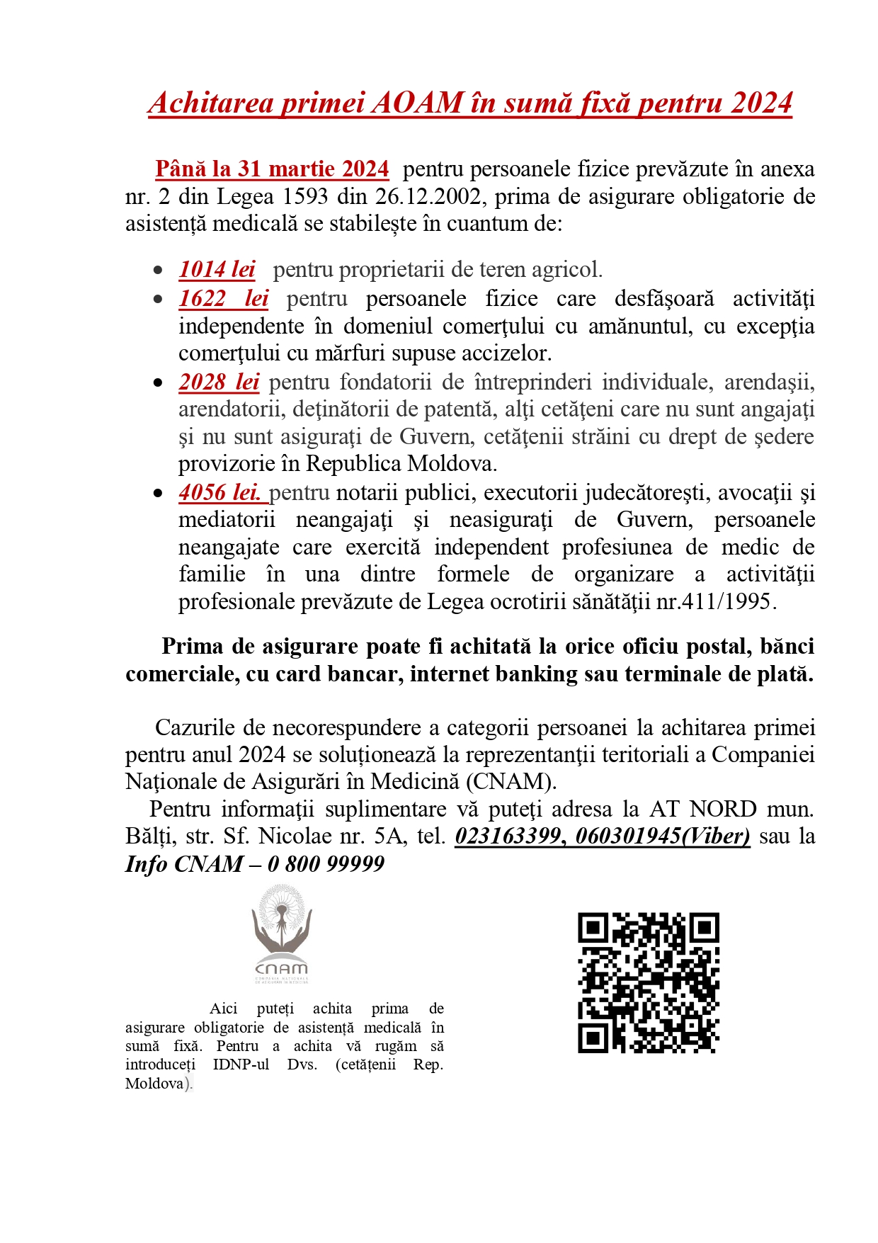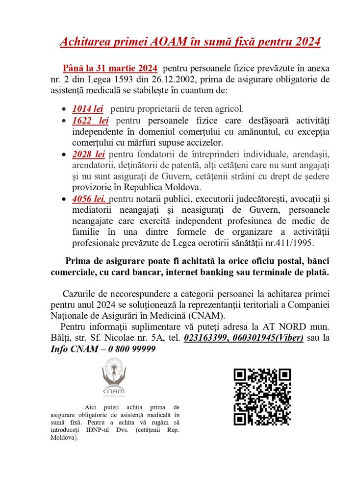 Achitarea primei AOAM în sumă fixă pentru 2024